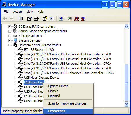 - Klik kanan USB Root Hub > Klik Properties