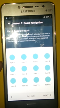 4. Setelah aktif hp akan bicara sendiri dan akan masuk ke tampilan learning Talkback (Setelah Talkback aktif maka anda harus 2x klik untuk pilih menu atau klik lainya, karena Talkback sendiri berfungsi untuk learning pada fungsi fungsi menu yang ada)